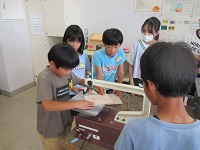5年生は、図画工作科で糸鋸をつかった学習を始めました。使い方や刃の付け方を教わってから、使ってみました。初めはおそるおそる使っていた子供たちも、あっという間に慣れ、「楽しい」「もっとやってみたい」と嬉しそうにしていました。さて、どんな作品になるのかな。