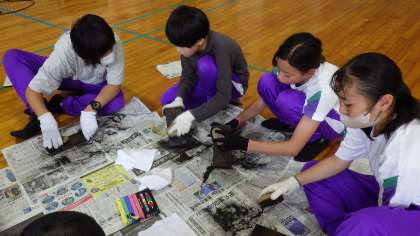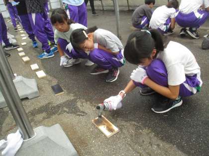 7月11日〜7月12日の2日間、6年生は国立立山青少年自然の家で宿泊学習を行ってきました。自然の家に着き、一つ目の活動は焼き板づくりをしました。丁寧にバーナーで板に焦げ目をつけ、磨き上げました。思い出に残る焼き板がたくさん完成していました。