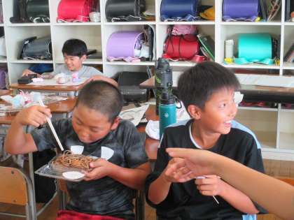 毛糸で作った焼きそばがとてもおいしそうでした。割りばしもついていました。