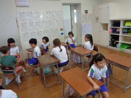 朝の時間に、なかよしスキルタイムで友達と「好きな○○」について質問し合いました。うなずきながら話を聞き、お互いが笑顔になってるのが印象的でした。