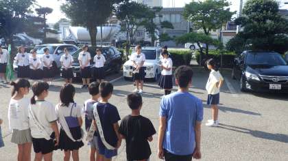 岩瀬中学校26名の生徒と萩浦小学校の運営委員会であいさつ運動を行いました。