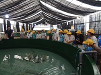えさやりもさせてもらい、養殖している様子を近くでじっくりと見ることができました。