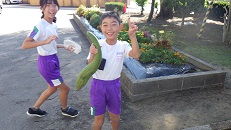 4年2組では、ヘチマの観察を行いました。1時間目にヘチマを撰び、2時間目に切って中身を確かめました。切ってみて初めて知ることがあったり、中を見て新たな疑問が生まれたりするなど、気付き、発見の多い時間となりました。