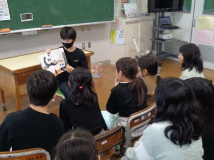 図書委員会が読み聞かせを行いました。紹介した本の面白さが伝わるように工夫して読んでいました。読み聞かせをしてもらった子供たちも、興味津々で聞き入っていました。