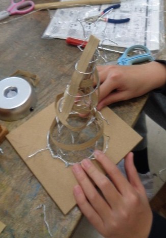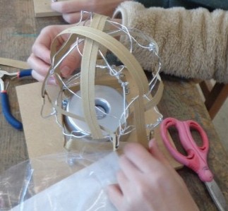 6年生は図工で「すてきな明かり」をつくっています。この後、和紙を貼って仕上げていきます。