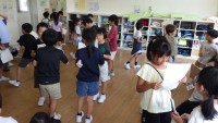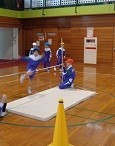 体育科の学習では、「高跳び遊び」と「鉄棒遊び」をしています。「高跳び遊び」では、互いにアドバイスをし合いながら、70cmを跳ぶことを目指しています。用具の準備や後片付けもみんなで協力してがんばっている2年生です。