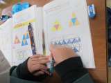 算数の時間に、二等辺三角形と正三角形を敷き詰めて、模様づくりを行いました。それ...