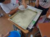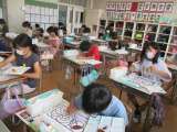 4年生は図画工作科の時間に、水の量や色合いを工夫しながら水彩絵の具で色をぬる活...
