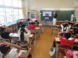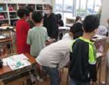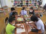 外国語活動では、身近な文房具の単語を勉強しています。ALTの先生と、ゲームを交...