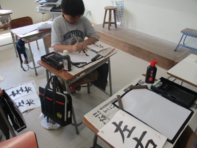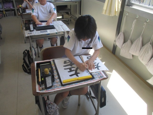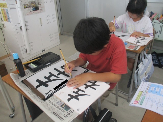 書写の学習では、筆順による字形の違いに気をつけながら練習し、清書しました。