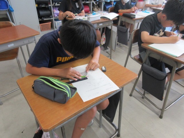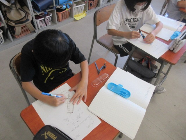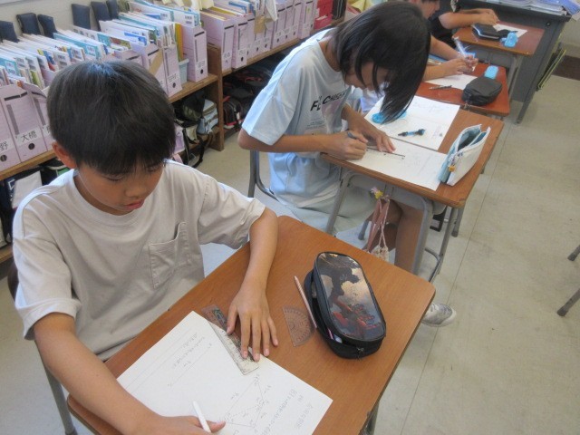 分度器やコンパスを使い、全く同じ図形を書くために、「1mmのずれもないように......」とても集中して作図していました。