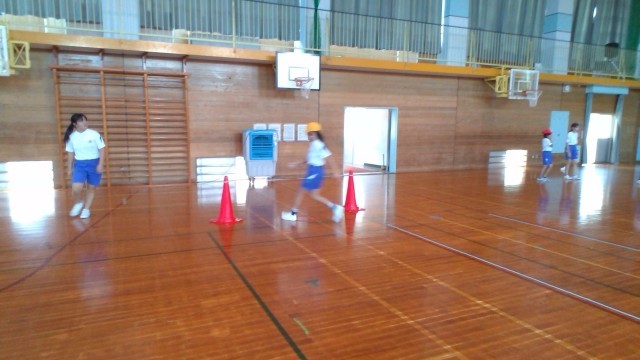 体育の学習で「走り高跳び」をしています。歩数や踏切足を意識しながら練習をすることができました。
