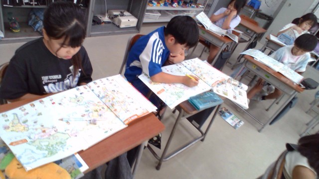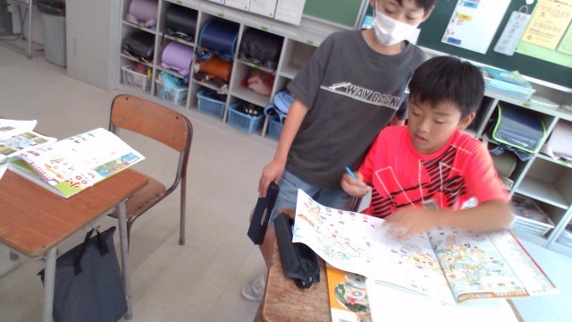 社会科では、お店で働く人の学習を進めています。今日はスーパーマーケットの品物がどこからくるかを調べました。
