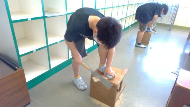 図工の時間には、のこぎりを使って、ギコギコ板を切りました。この学習で、初めてのこぎりを使う子が多くいましたが、安全に活動するための話をよく聞き、楽しく取り組むことができました。