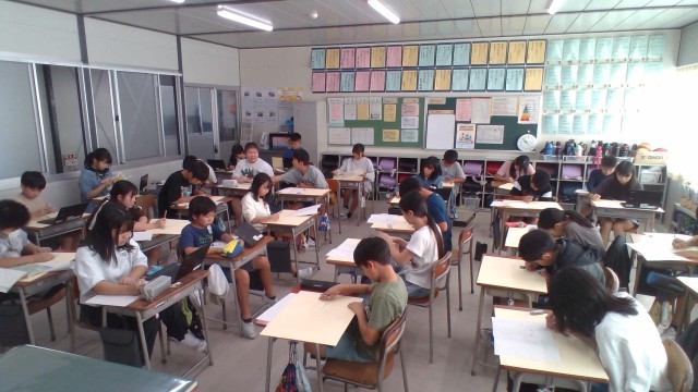 図画工作科では、「言葉から想像を広げて」の学習をしています。国語科で学習している「やまなし」の作品から想像しながら、風景や様子等を描いています。「やまなし」の作中に出てくる独特な言葉や様子等を水彩で表現していきます。