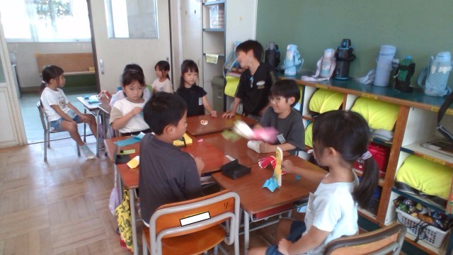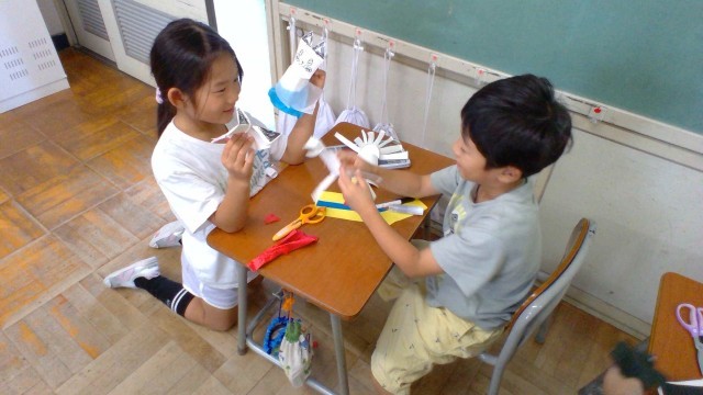図画工作のじかんでは、紙コップを使って口がパクパク動くおもちゃを作りました。お互いの作品を見せあったり、パクパク動かして遊んだりして楽しむ姿が見られました。