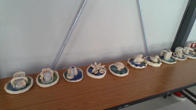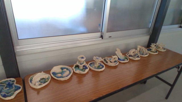 「水の流れのように」の作品が完成しました。完成した作品をお互いに見合う姿が見られました。