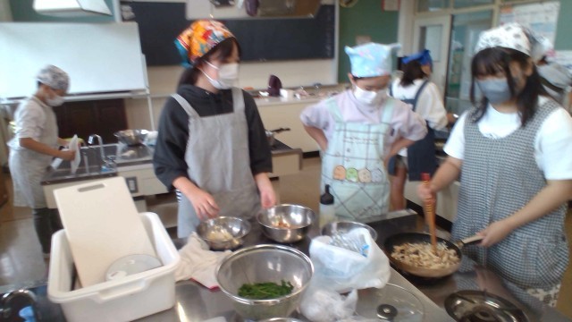 家庭科の学習では、調理実習をしました。班ごとに、「ベーコンポテト」「具だくさんオムレツ」「厚揚げと野菜のチャンプルー」等を作りました。余った具材も使い、もう一品作るなどの姿が見られました。美味しくできて、嬉しそうな子供たちでした。材料の準備等、ご協力ありがとうございました。