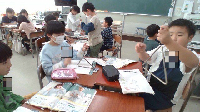 理科の学習では、音の性質について調べています。今日はトライアングルの音がなる様子を観察し、気づいたことをノートにまとめました。
