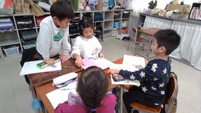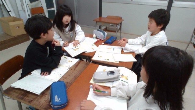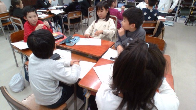国語科では、日常で困っていることや、苦手なことを解決するために、グループで話し合う活動を行いました。「どうしたら、足がはやくなるかな」「兄弟と喧嘩しないにはどうしたらよいかな」「字がもっと上手に書けるようになるためにはどうしたらよいかな」等、日頃の悩みをグループで相談し、周りの子も真剣に解決策を考えていました。