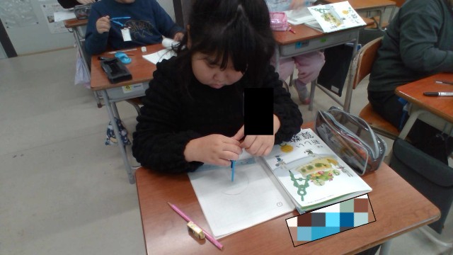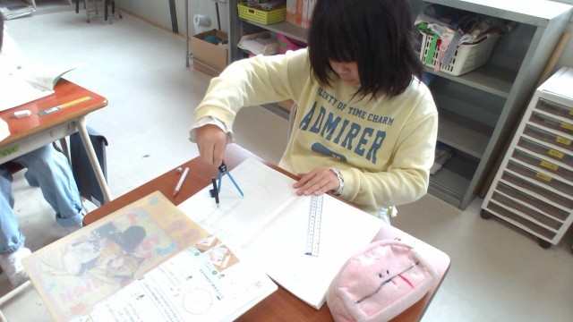 コンパスを使って円をかきました。美しい円をかくことができ、子供たちは嬉しそうでした。