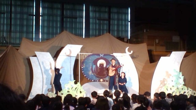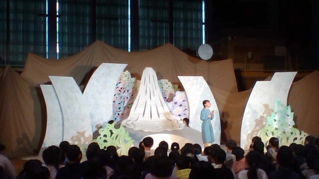 劇団風の子中部さんによる「ユエと瑠璃色の石」の観劇会がありました。劇団の方たちの迫真の演技にすぐに引き込まれ、劇に見入っていました。細かな動き、表現の仕方、お話の内容など様々なところに素敵さを感じ、あっという間の時間となりました。