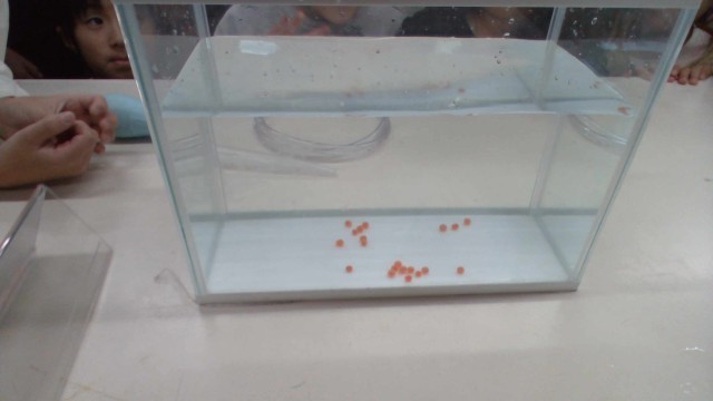 富山市水辺をきれいにする会のみなさんにお越しいただきました。サクラマスについてのお話を聞き、サクラマスの卵をプレゼントしていただきました。子供たちは、オレンジ色のきれいなサクラマスの卵を見て「かわいい!」「とてもきれいだね」と目を輝かせていました。