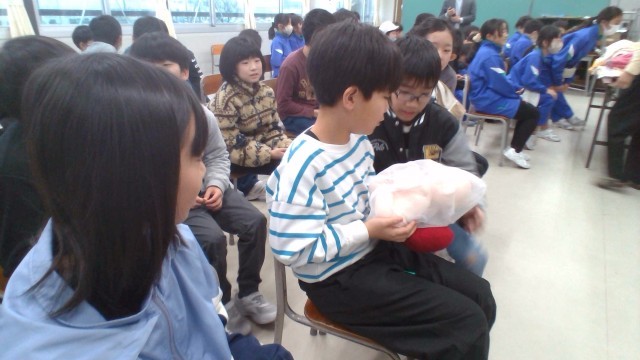 お母さんのお腹に生まれた時は米粒よりもさらに小さかったことや、たくさんの人に支えられて誕生したことを学び、元気に過ごすことができている今を大切にしようと気持ちを高める子供たちでした。話を聞いて、子供たちは育ててくれた家族のみんなに感謝の気持ちをもって過ごしたいと話してくれました。