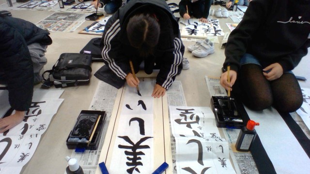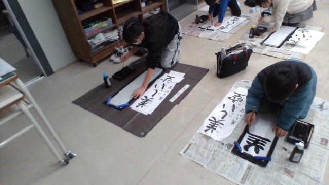 明けましておめでとうございます。今年もよろしくお願いいたします。書初め大会では、一文字一文字を大切にしながら真剣に取り組む姿が見られ、筆使いや書く姿勢から1年の成長を感じました。静かな雰囲気で心を落ち着かせて書くことができ、3学期の気持ちのよいスタートになりました。