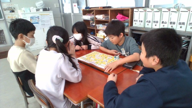 すごろくを楽しみながら、冬休みの思い出を語り合いました。教室には、笑い声や楽しく話す声であふれました。