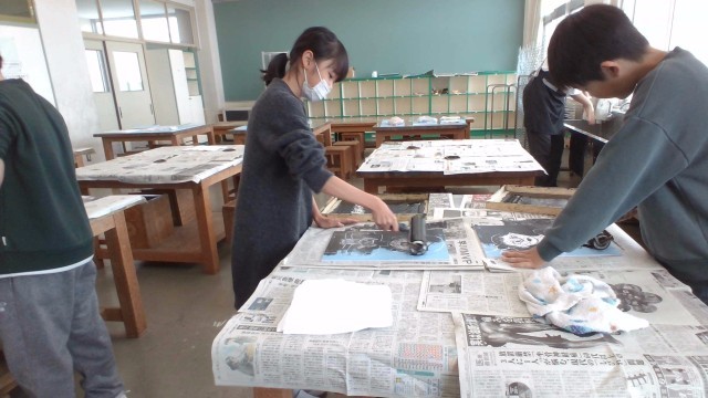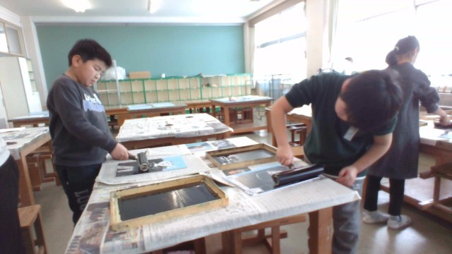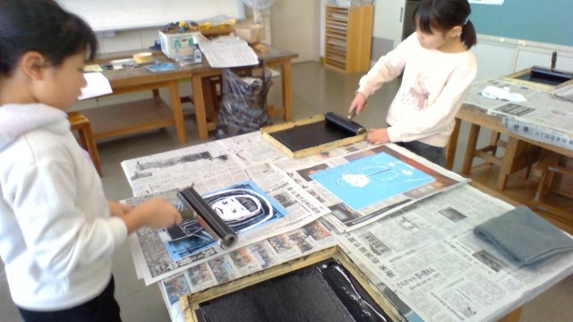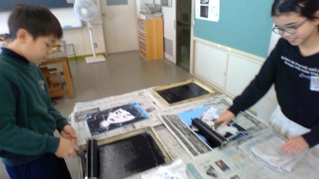 版画を刷りました(4年生)