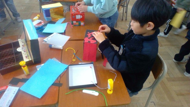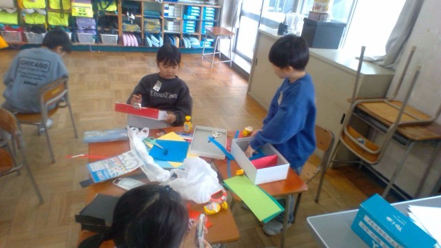 図画工作の時間に、自分の大切なものをしまうことができる「たいせつボックス」を作りました。