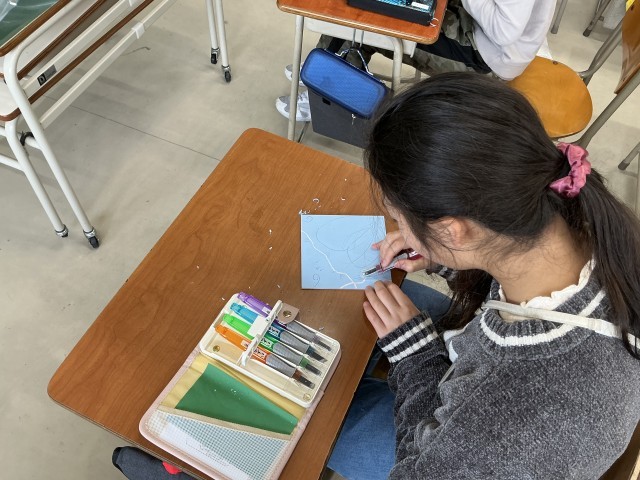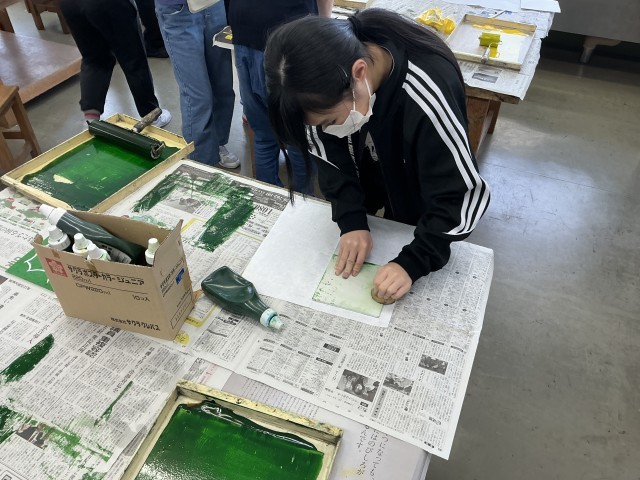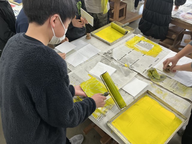 図画工作科では、版画に取り組みました。今回は1つの版を回してつなぐ回転版画に挑戦し、完成する模様を想像しながら模様を考えたり、彫ったりしていきました。つながった模様をみて満足そうな子供たちでした。