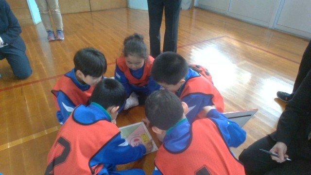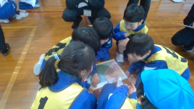 体育科では、みんなで楽しめるようにルール作りをした鬼遊びをしています。今は3対2でチームでしっぽとり遊びをしています。各チームでしっぽを取られないように作戦を熱心に立てたり、練習したりしています。チームの友達がしっぽを取られずにゴールすると「やったー!」と喜びの声が各チームから聞こえてきました。