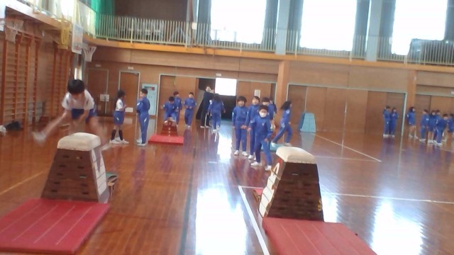 体育科では跳び箱運動に取り組んでいます。ポイントを意識して練習を重ねています。6段や7段にも挑戦しています。