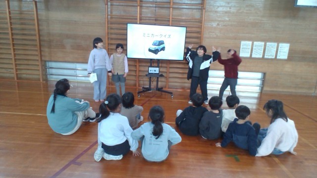 総合的な学習では、2学期から熊野地区にある企業について調べてきました。今日は、調べたり見学したりしてきたことをまとめ、2年生に発表しました。2組の様子です。