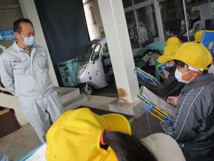 タケオカ自動車工芸では、車が作られる様子を見学させていただきました。車にはたくさんの部品が使われていることを知り、驚いていました。