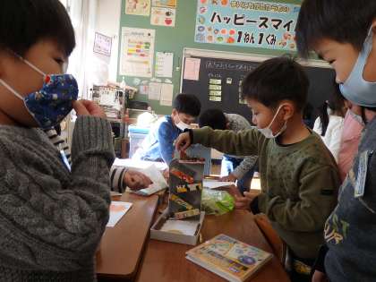 生活科では「秋をたのしもうランド」を開き、みんなが作った秋のおもちゃを楽しみました。