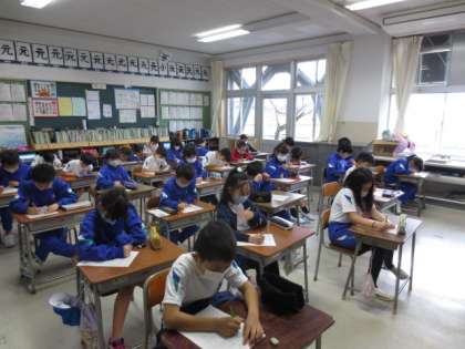 今日は、4年生から6年生の代表の人たちに、友達との思い出を発表してもらいました。話を聞いているだけでも、いろいろなところで優しい言葉かけや行動が見られるのだなと感じられました。