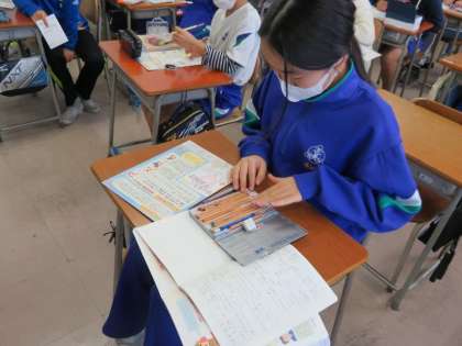 租税教室の後には、学んだことを基に、税金をテーマとした絵はがきを描きました。
