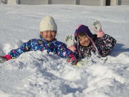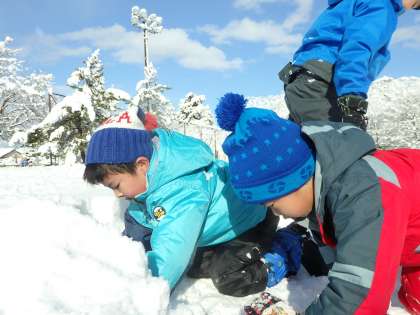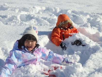 広いグラウンド一面に積もった雪で、思いっきり楽しみました。
