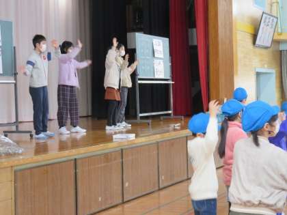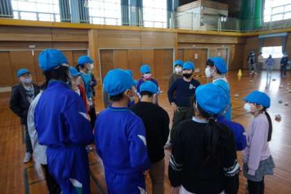 卒業プロジェクトの一つとして、色団別のなかよし班活動を始めました。今日は、青団が活動をする日だったので、黄団が進行・補助係として活動を手伝いました。