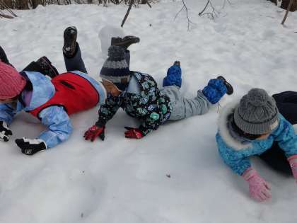 雪っ子遠足では、2・3年生と一緒に冬の自然を思い切り楽しみました。