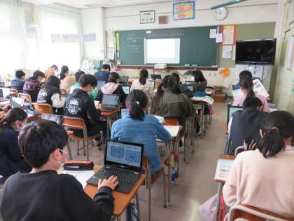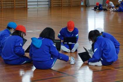 2組は、バスケットボールの各チームの振り返りを、ジャムボードを使って行いました。