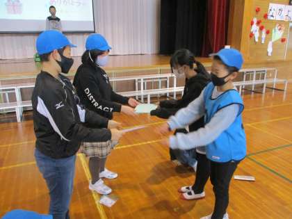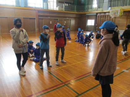 集会係の子供たちは、全校の前で説明したり、動きのモデルを見せたりすることに慣れてきたようです。