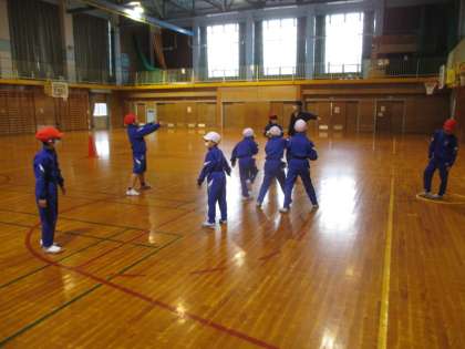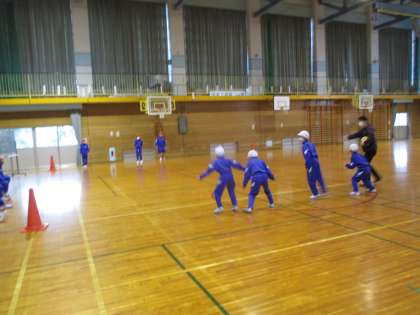 体育科では、ボールを使ったゲームを学習しています。ボールをとってからすぐに走ったり、相手のいないところに動いたりなど、動きを考えながら取り組んでいます。