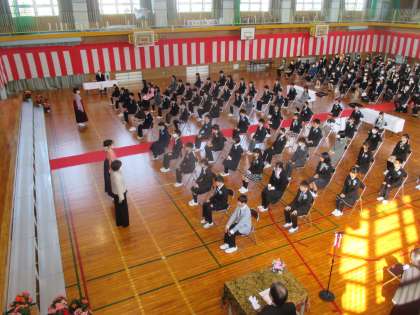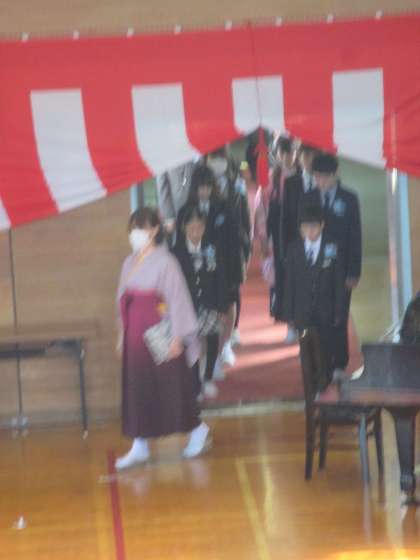 卒業生は、六年間の思い出をかみしめて堂々と入場しました。