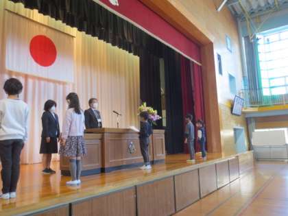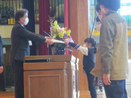 修了式では、各クラスの代表児童が、校長先生から修了証をいただきました。