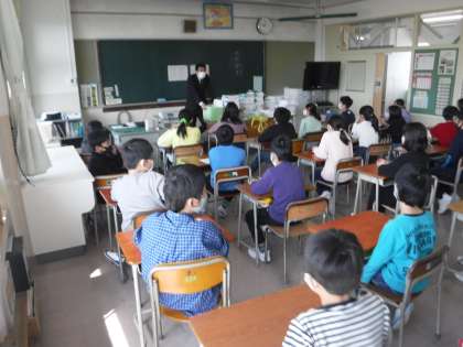 始業式後に、各学級に分かれて学級開きをしました。担任の先生の自己紹介や5年生の教科書を配布しました。