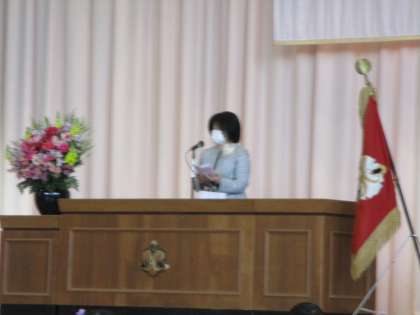 式辞では、校長先生から、「元気のよい返事や挨拶の大切さ」「目と心をつないで話を聞くこと」「健やかな心と体をつくること」についてのお話がありました。